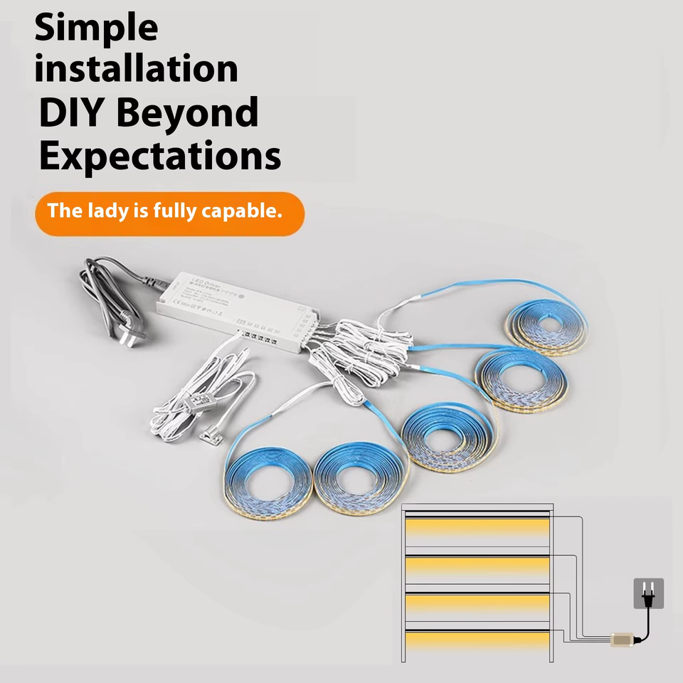 Bande lumineuse LED COB 12V sous l'armoire, lumière à faible tension à intensité variable pour le comptoir de cuisine, l'éclairage des placards