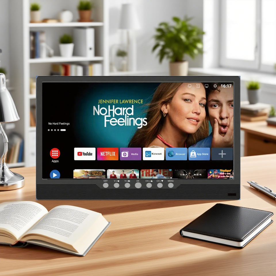 Mini Smart TV 12V DC rechargeable personnalisable 14 15.6 17.3 et 20 pouces rétro-éclairage LED FHD HDTV définition Android OS lecture USB