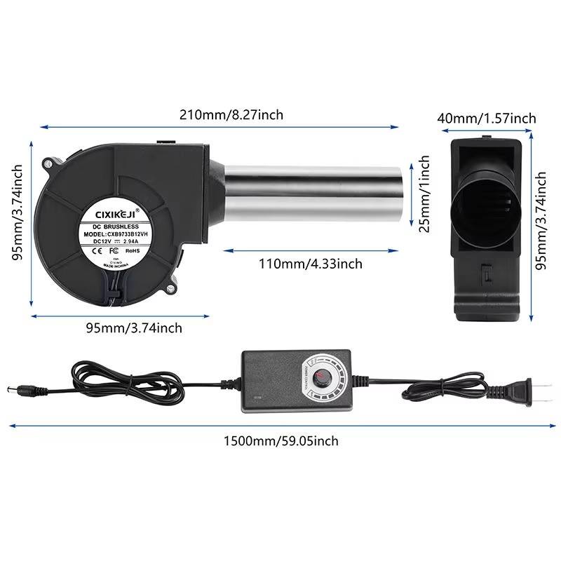 Souffleur à vitesse variable 12V DC - Ventilateur centrifuge pour poêle à bois/fourneau à huile usagée (compatible USB)