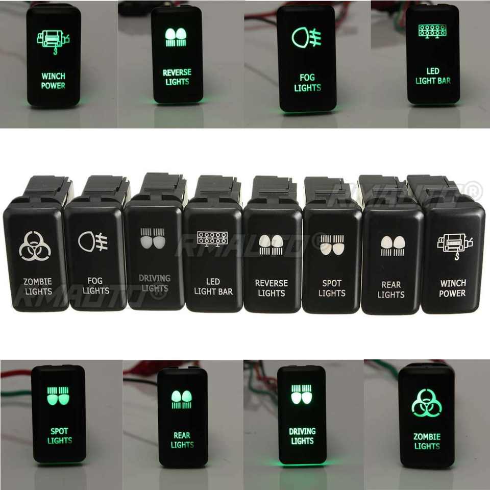 Interrupteur à bouton-poussoir de remplacement OEM LED vert 12V pour Toyota Landcruiser Hilux Prado 120 SERIES 2003-2009, barre lumineuse LED, éclairage de conduite