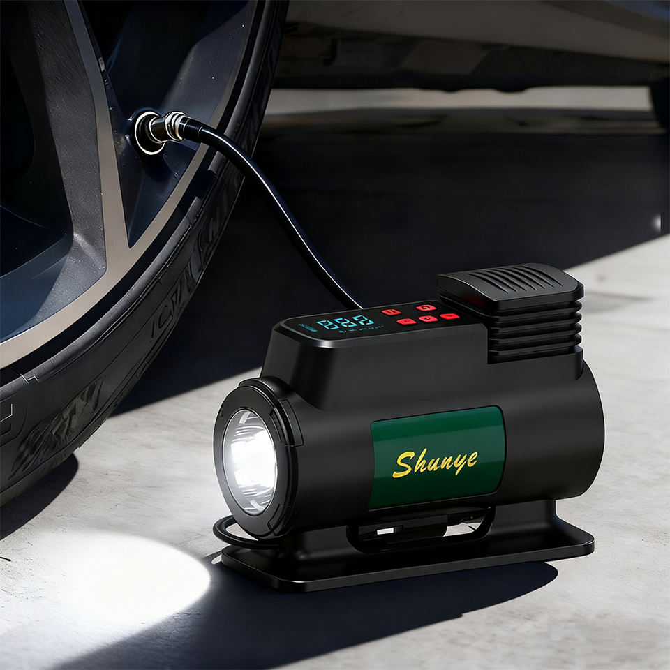 Gonfleur de pneus numérique intelligent 12V pour voiture et moto Arrêt automatique Lumière d'urgence Surveillance de la pression des pneus - Pompe miniature portable