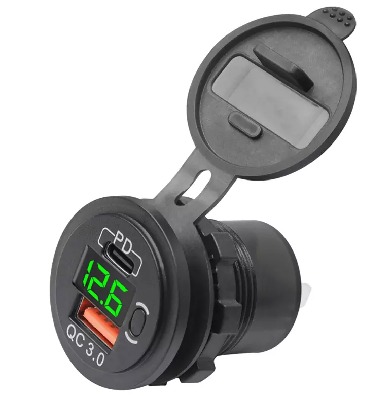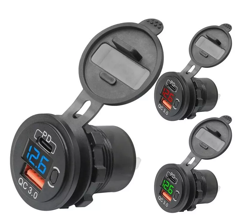 Prise USB 12V 30W PD & QC3.0 Chargeur de voiture double USB avec voltmètre et interrupteur Charge rapide