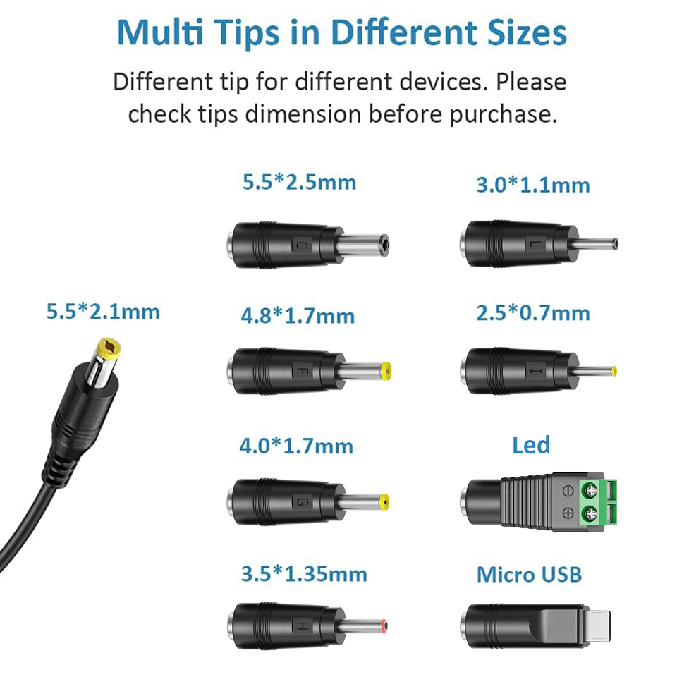 Output:3V 4.5V 5V 6V 7.5V 9V 12V 1A