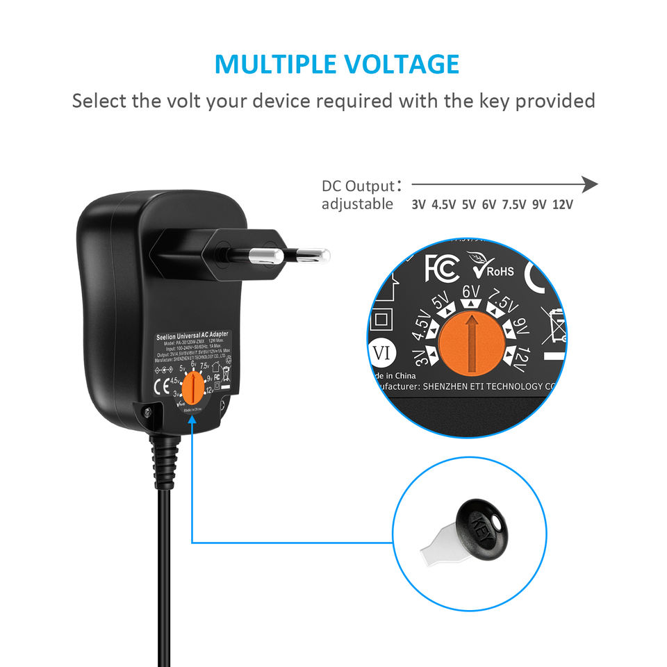 Sortie:3V 4,5V 5V 6V 7,5V 9V 12V 1A