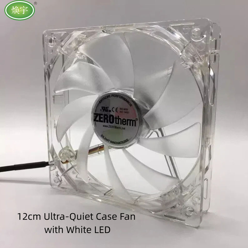 Ventilateur de boîtier d'ordinateur de 12 cm, taille 12025, ultra silencieux, entièrement transparent, éclairage LED avec interface 3 broches, 4 lumières blanches
