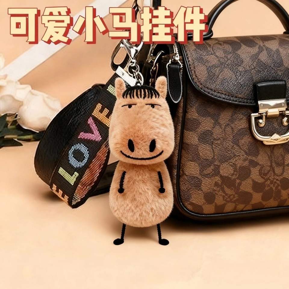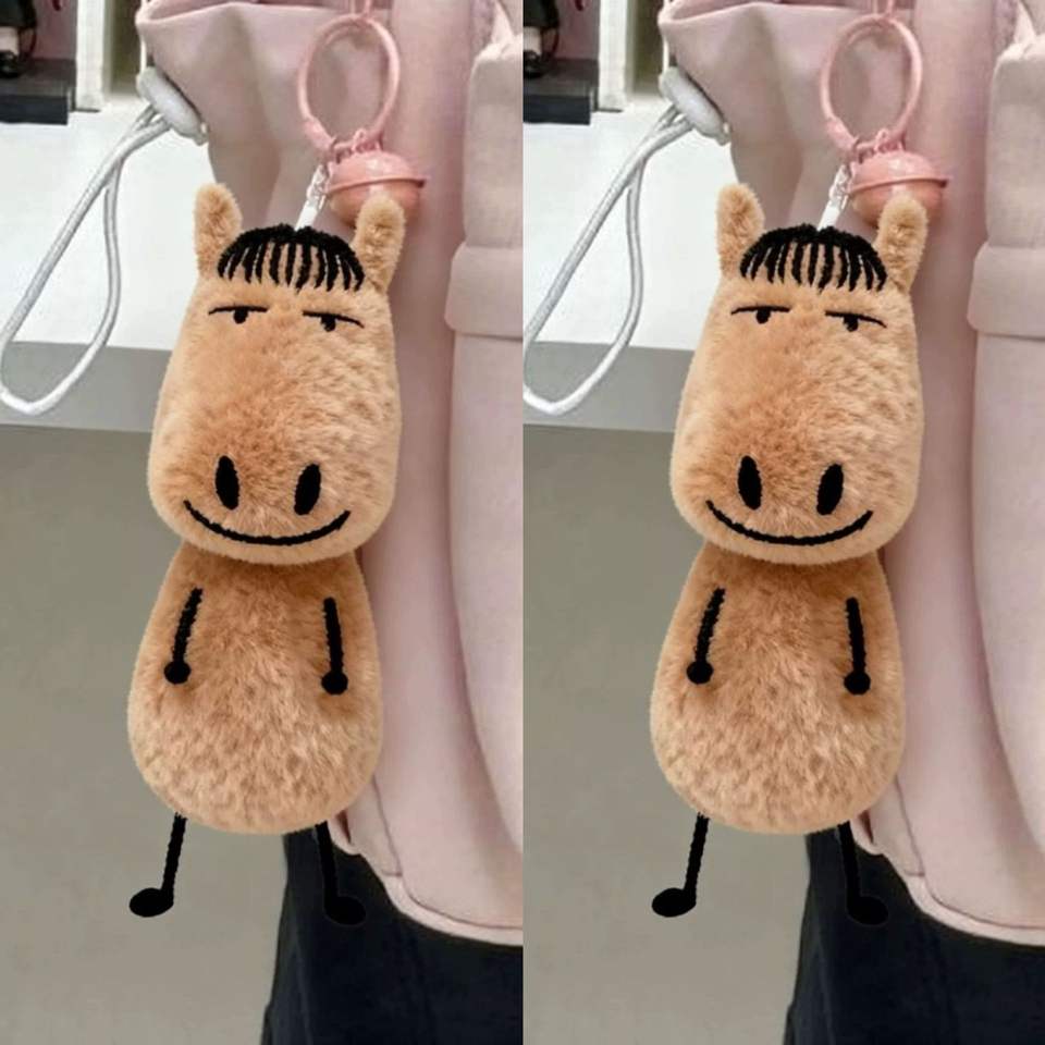 Porte-clés pendentif en peluche créatif abstrait de 12 cm, poupée mignonne et originale, pendentif de sac, cadeau pour l'Année du Cheval