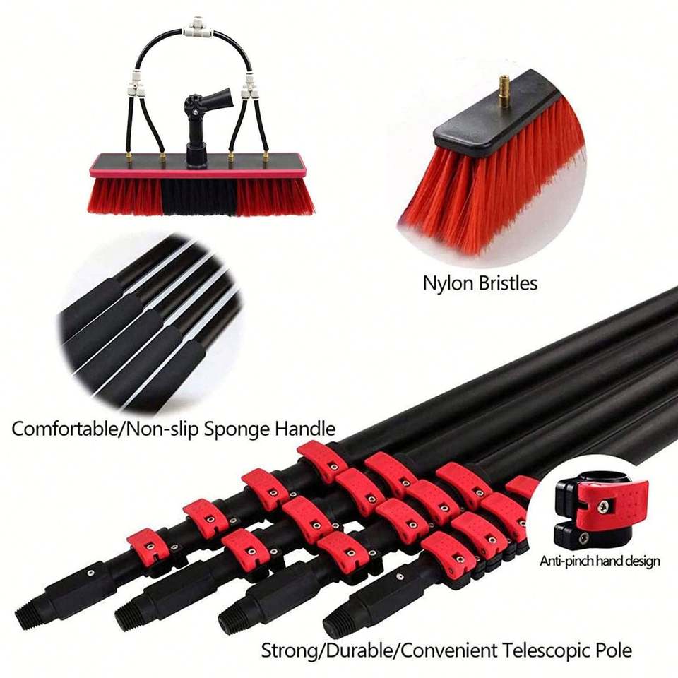 Brosse de nettoyage domestique multifonctionnelle et écologique de 12 pieds avec panneau solaire et tige télescopique en aluminium alimentée par l'eau de la fenêtre