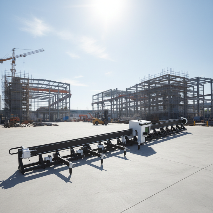 Machine de découpe laser à tube de 12 m de long avec 3 mandrins et alimentation automatique, découpe les tuyaux de 14 à 355 mm de diamètre, pour une utilisation structurelle et industrielle