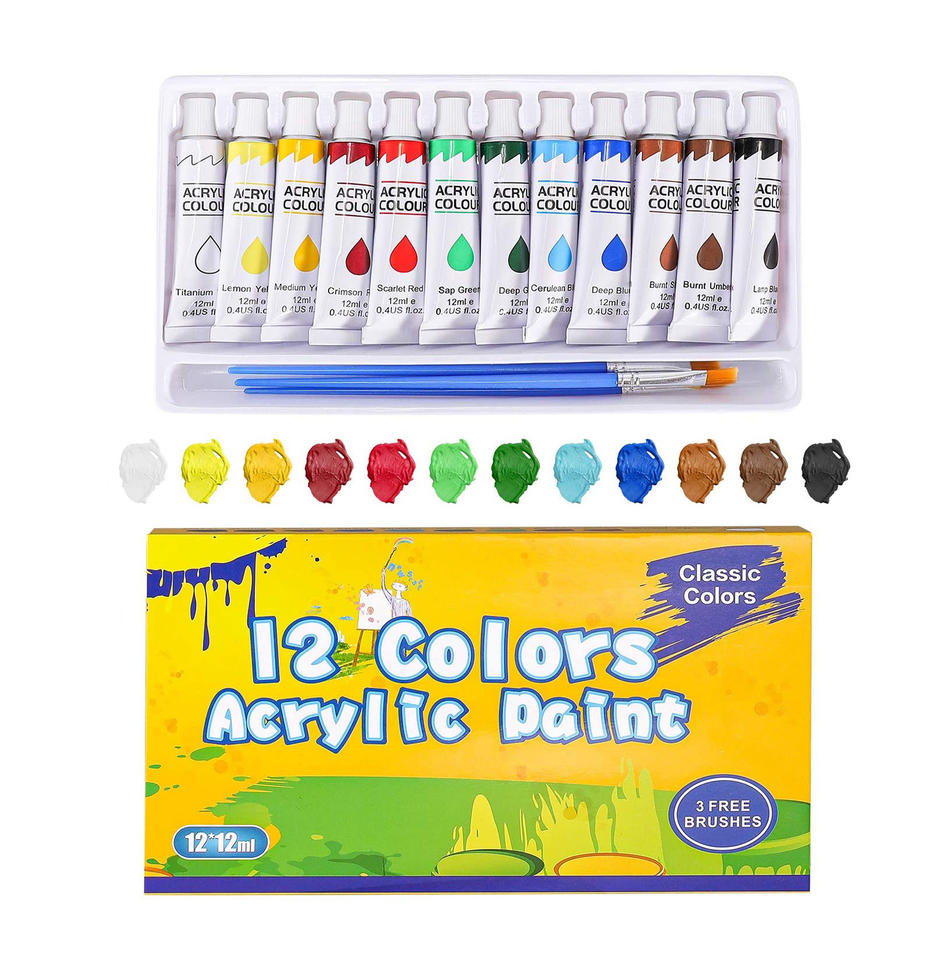type:12 Classic Color Art Acrylic Paint 3 Free Brush Set for Hobby Painters