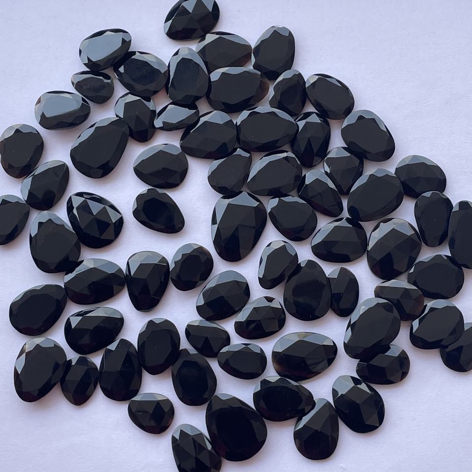 Product Name:Natural Black Onyx Stone Free Size Rose Cut Slice