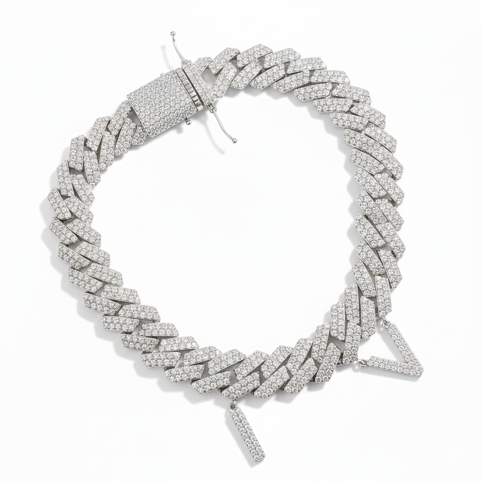 Bracelet de cheville personnalisé élégant en argent 925 avec diamant moissanite de 12 mm, lettre initiale, lien cubain, bracelet personnalisé, bijoux hip hop, cadeau