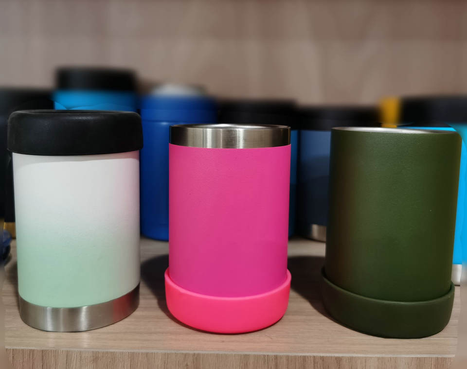 Refroidisseur de canettes isotherme sous vide en acier inoxydable 304 de qualité alimentaire de 12 oz avec logo personnalisé pour les fêtes