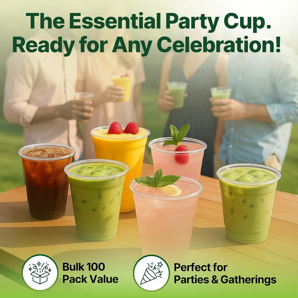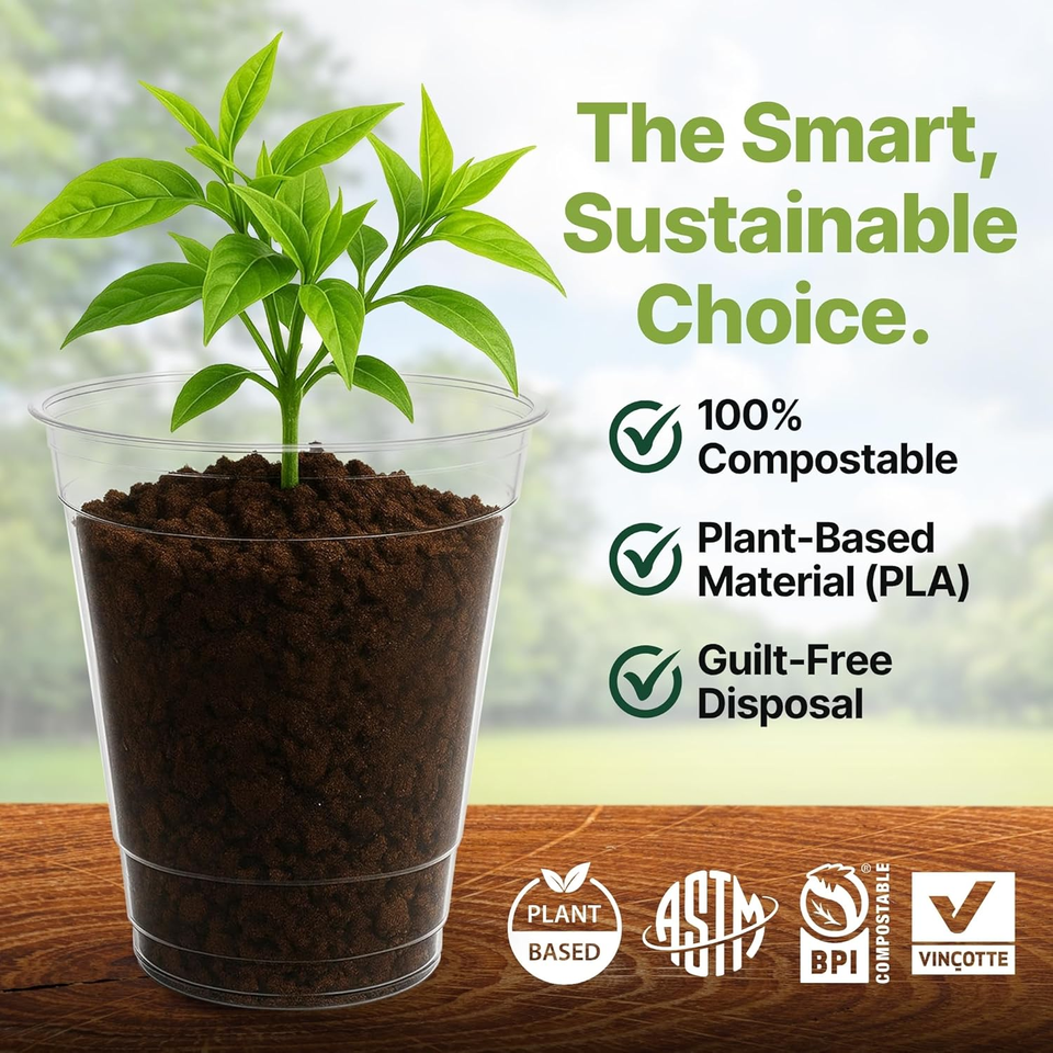 Gobelets froids jetables transparents compostables de 12 oz – Alternative moderne écologique au plastique végétal, sans BPA, biodégradable en PLA, anti-fuite