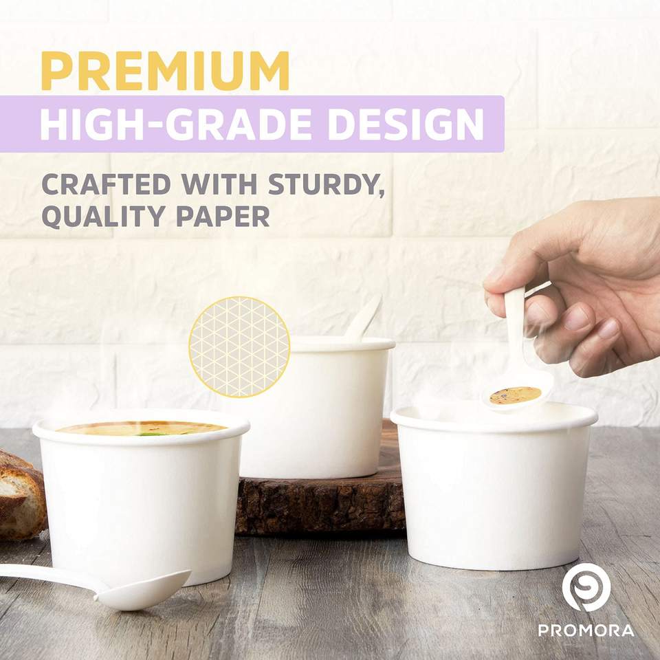 12oz Eco-Friendly Food Grade Greaseproof Paper Disposable Bowls with Spoons for Ice Cream Soup Dessert & Hot/Cold Food