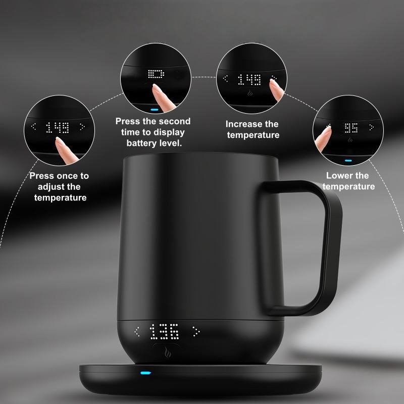 Mug à café électrique intelligent en acier inoxydable de 12 oz avec contrôle de la température et chauffage électrique pour le bureau