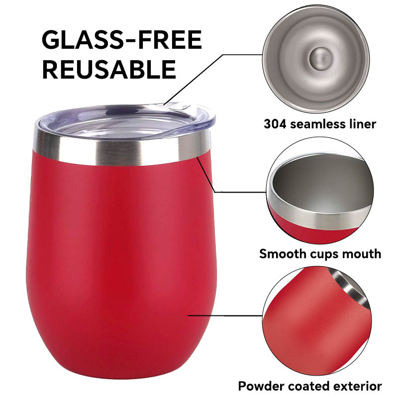 12oz Powder Coated Stainless Steel Insulated Wine Tumbler Vacuum Stemless Wine Glass Customized Mug