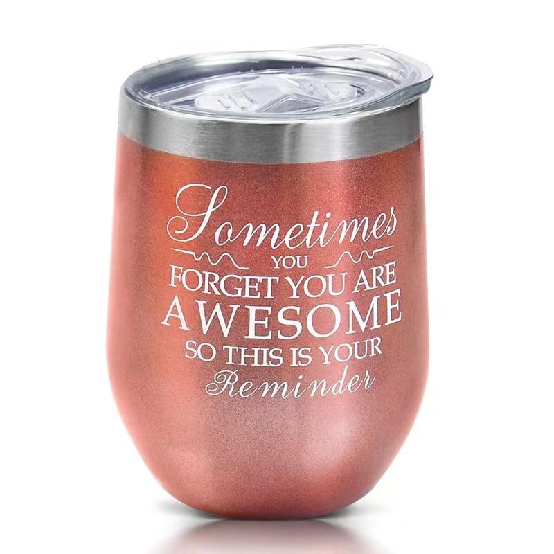 Gobelet à vin isotherme en acier inoxydable thermolaqué de 12 oz, verre à vin sans pied sous vide, tasse personnalisée avec paille, style zen asiatique, pour le voyage