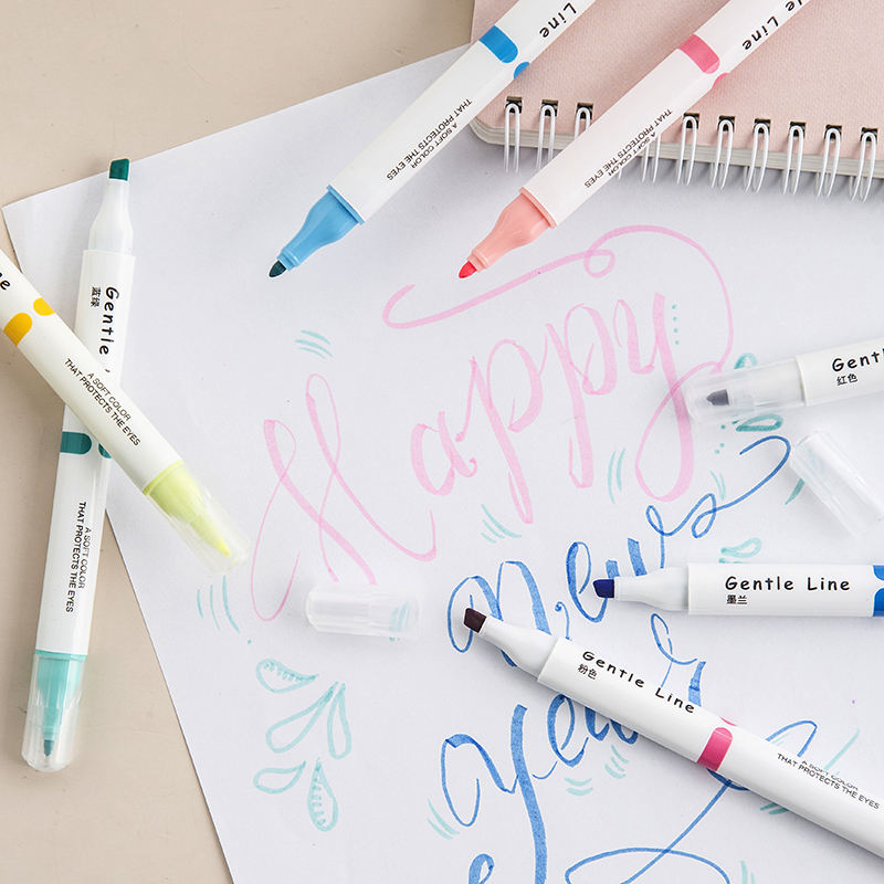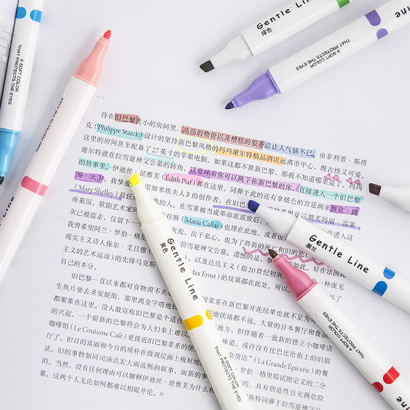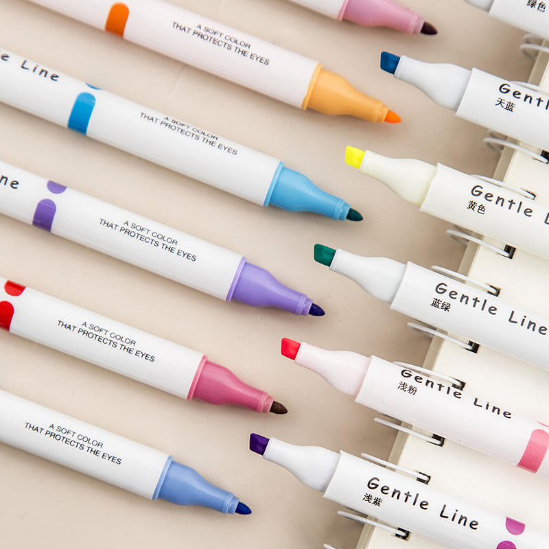 Lot de 12 stylos surligneurs pastel à double tête colorés de forme ovale sans saignement, marqueurs de dessin, stylos fluorescents, fournitures scolaires