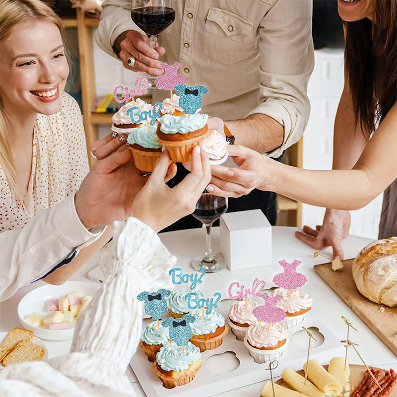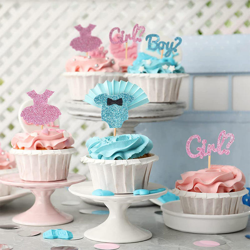 12 pièces de décorations de gâteaux en papier pailleté pour baptême, révélation de sexe et fête de naissance, décorations de gâteaux pour garçons et filles