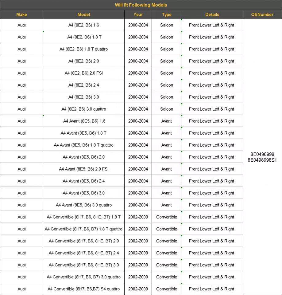 8E0498998., 8E0498998S1., 8E0407510B., 8E0407509D.