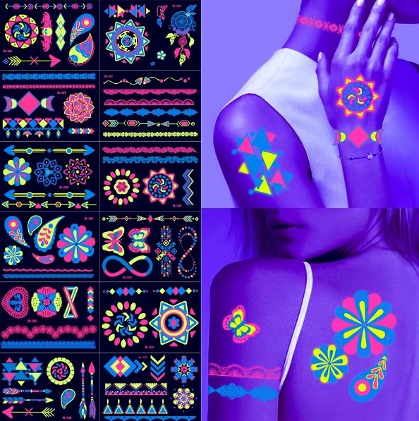 Autocollant Fluorescent Tatouages Temporaires Lumineux