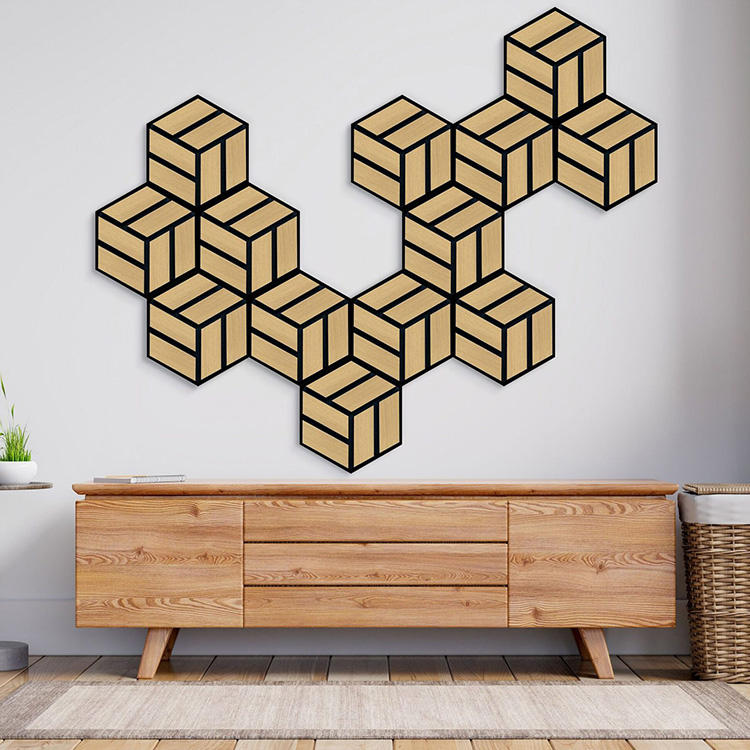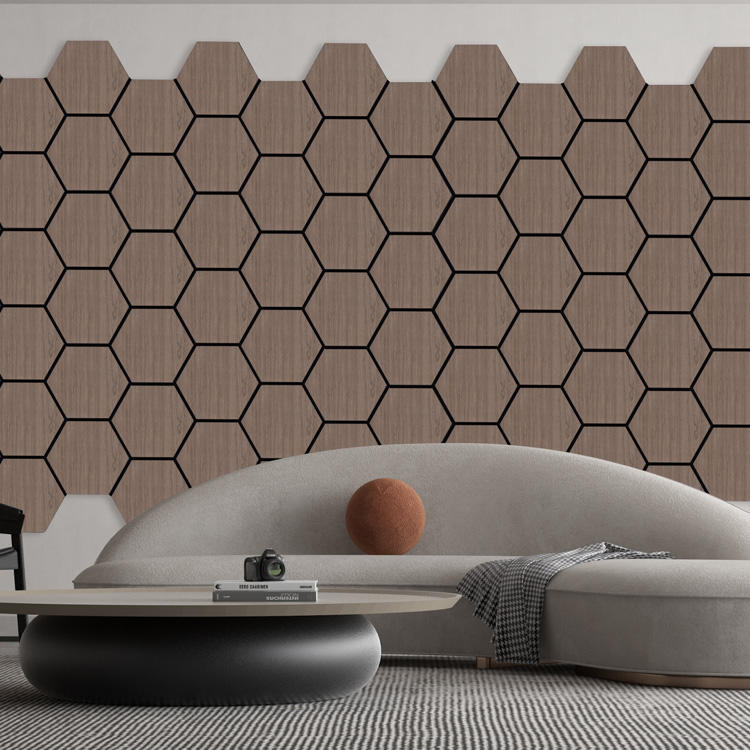 12 pièces panneaux acoustiques auto-adhésifs de conception hexagonale moderne insonorisés en bois haute densité pour absorbant le bruit de l'hôtel