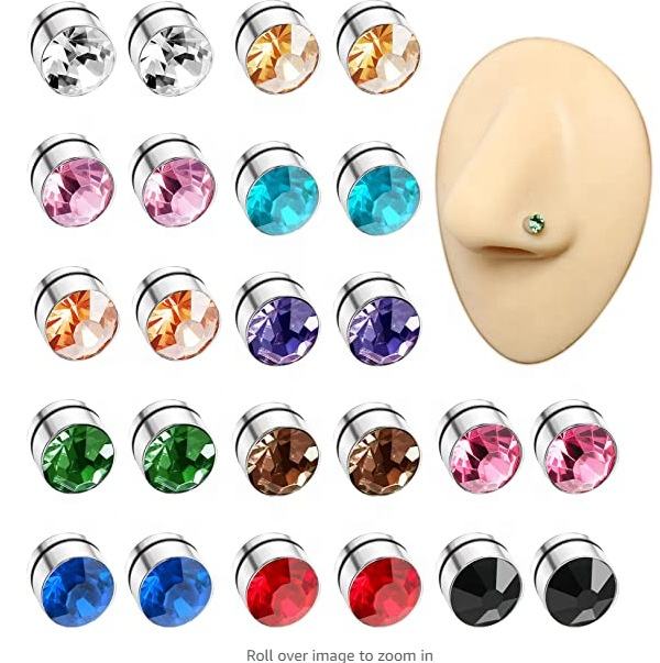 12 pièces/ensemble cristal magnétique goujon boucle d'oreille aimant nez lèvre goujon pour unisexe Non Piercing Tragus aimant nez goujon