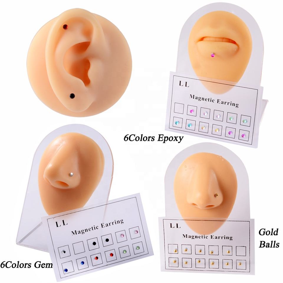 Lot de 12 Pièces Tendance Assorties, 6 Couleurs, avec Bille en Cristal et Aimant, pour Cartilage d'Oreille, Lèvre (Labret), Nez (Anneau), Bijoux de Corps, Cadeau de Mariage
