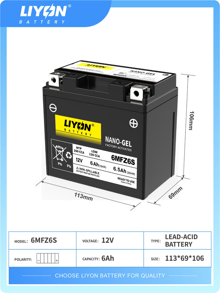 Batterie de moto 12V 6.5Ah, batterie de démarrage pour moto 6MFZ6S, vente directe d'usine, UTV, ATV, scooter