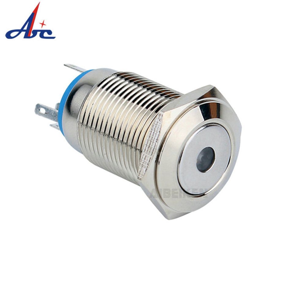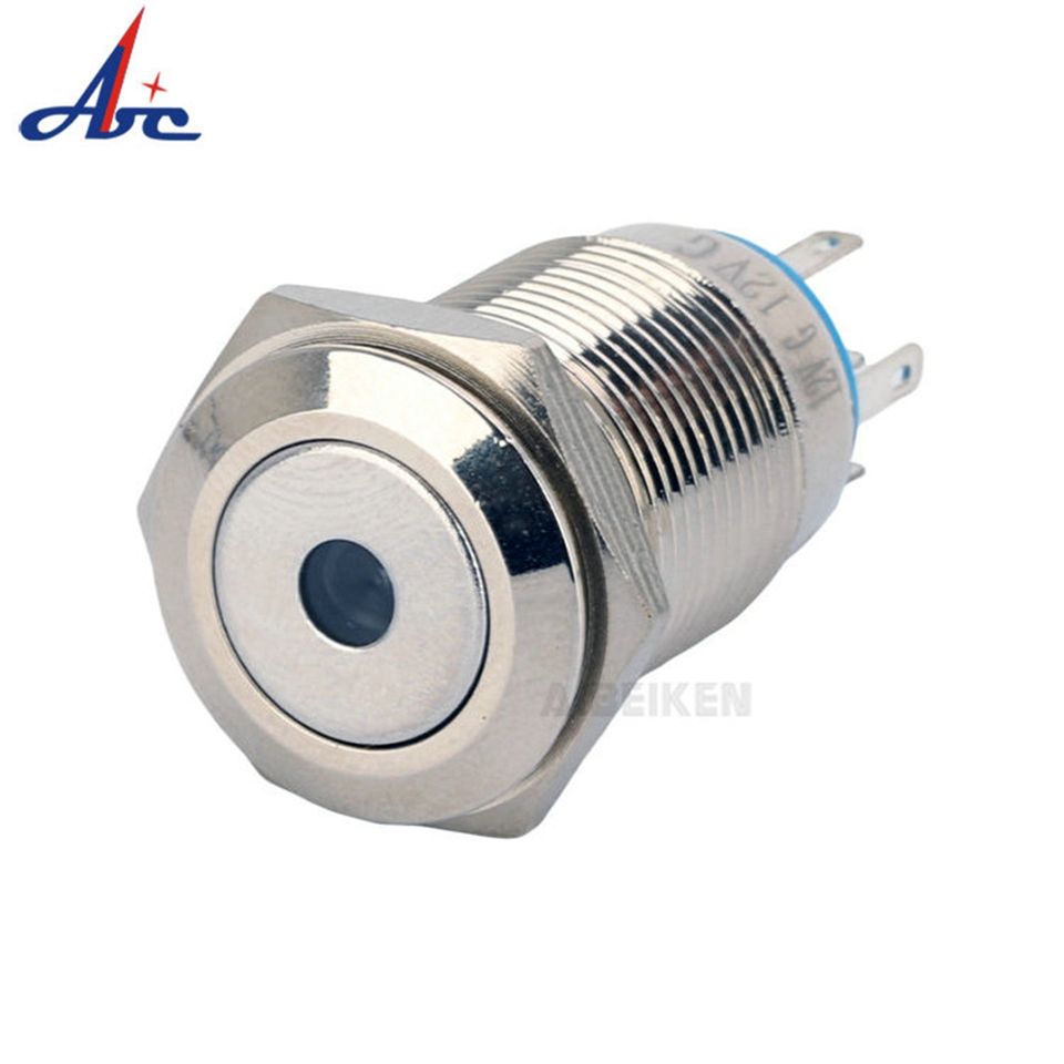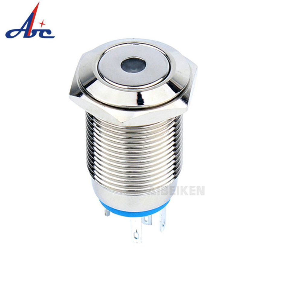 Bouton à tête plate en acier inoxydable 12v LED 16mm à retour automatique Interrupteur à bouton-poussoir momentané en métal avec lumière