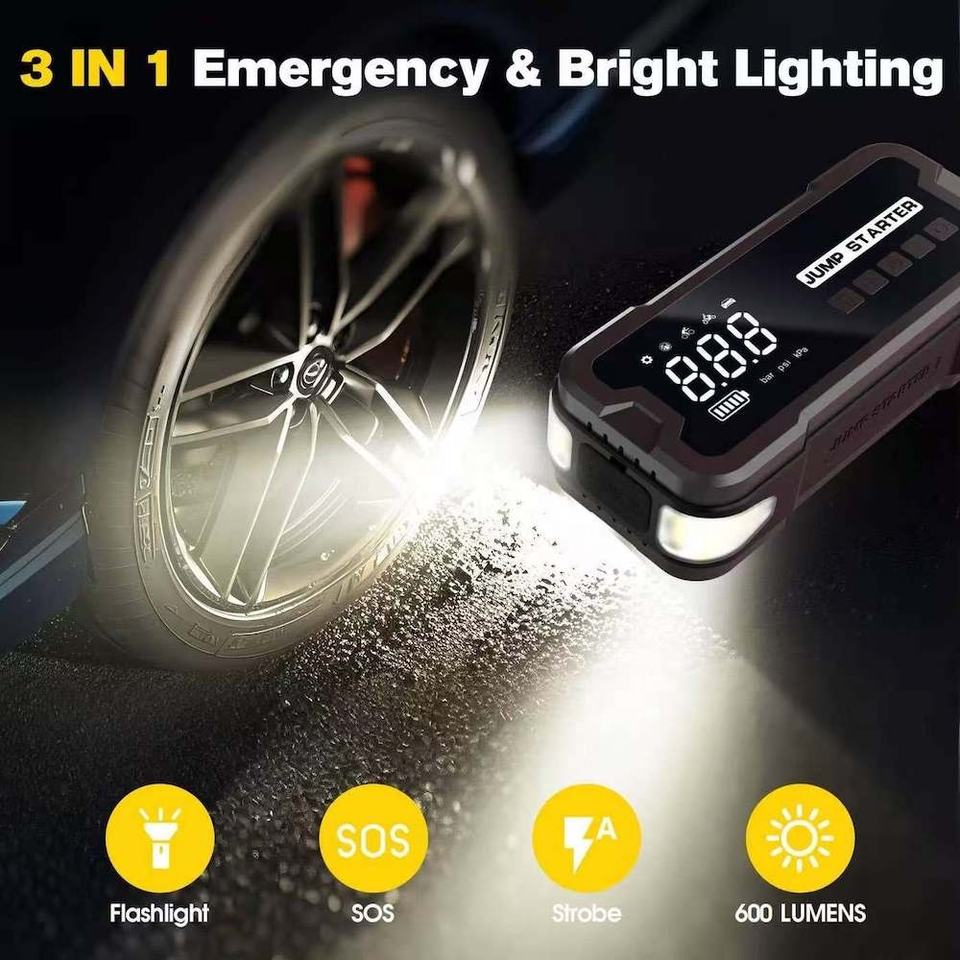 SOS/Stroboscope/Éclairage, Anti-étincelles, Démarreur de secours, Batterie externe