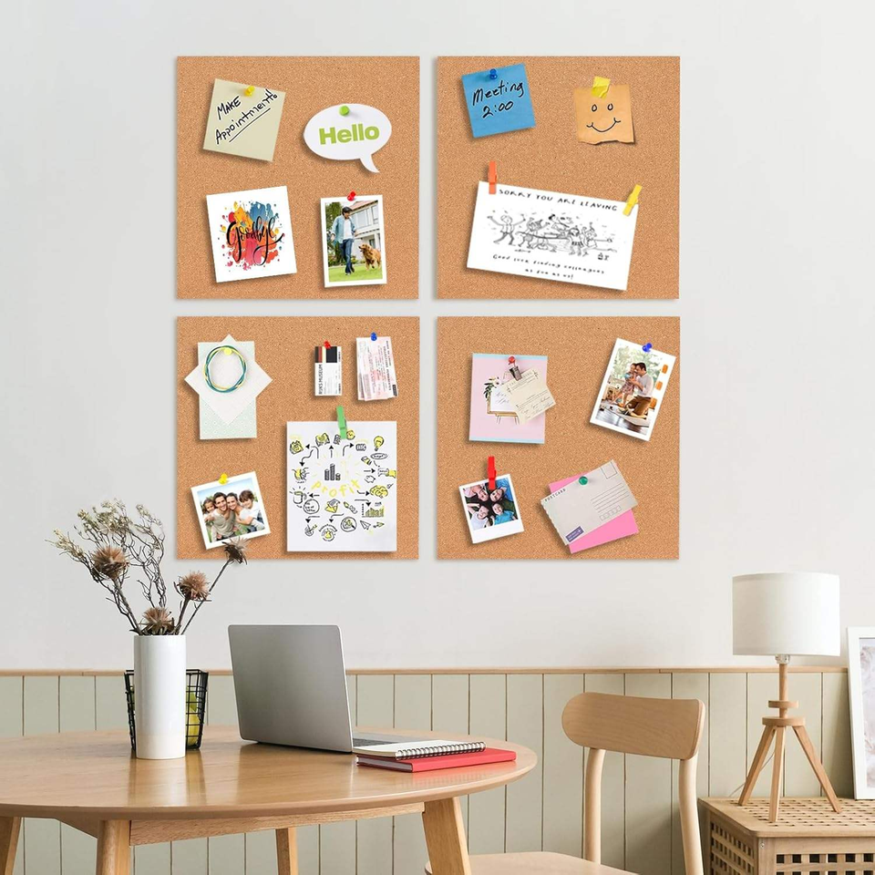 Tableau d'affichage en liège 12x12 pouces, tuiles carrées en liège extra épaisses pour murs, décoration maison et bureau, tableau d'affichage de messages scolaire, feuille de liège