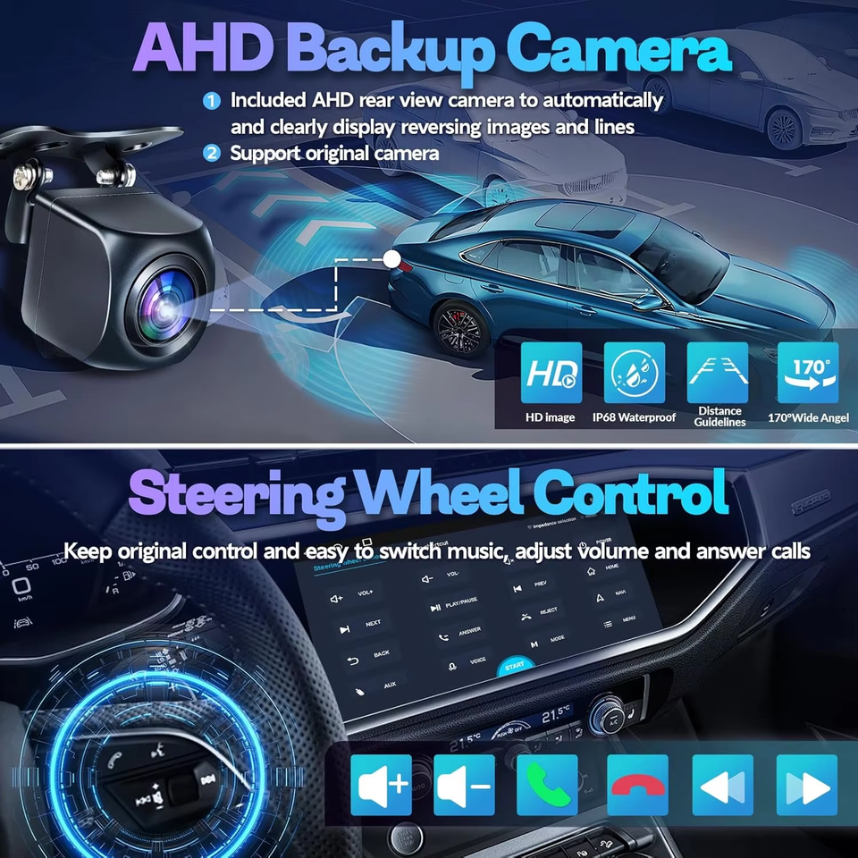 GPS, Stéréo, Amplificateur, DSP, CarPlay, Lien de miroir, Android auto, Image dans l'image, Écran partagé, Volant de voiture de Contrôle