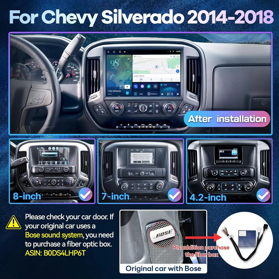 Lecteur multimédia de navigation GPS stéréo de voiture Android de 13.1 pouces avec CarPlay 4 + 32g pour Chevrolet Silverado GMC Sierra 2014-2018