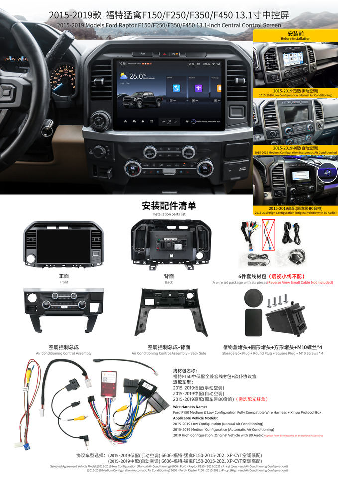 Autoradio 13,1 pouces pour lecteur Android MP3, écran tactile, navigation GPS, DSP, Carplay, Ford Raptor F-150/F-250/F-350/F-450 2015-2019