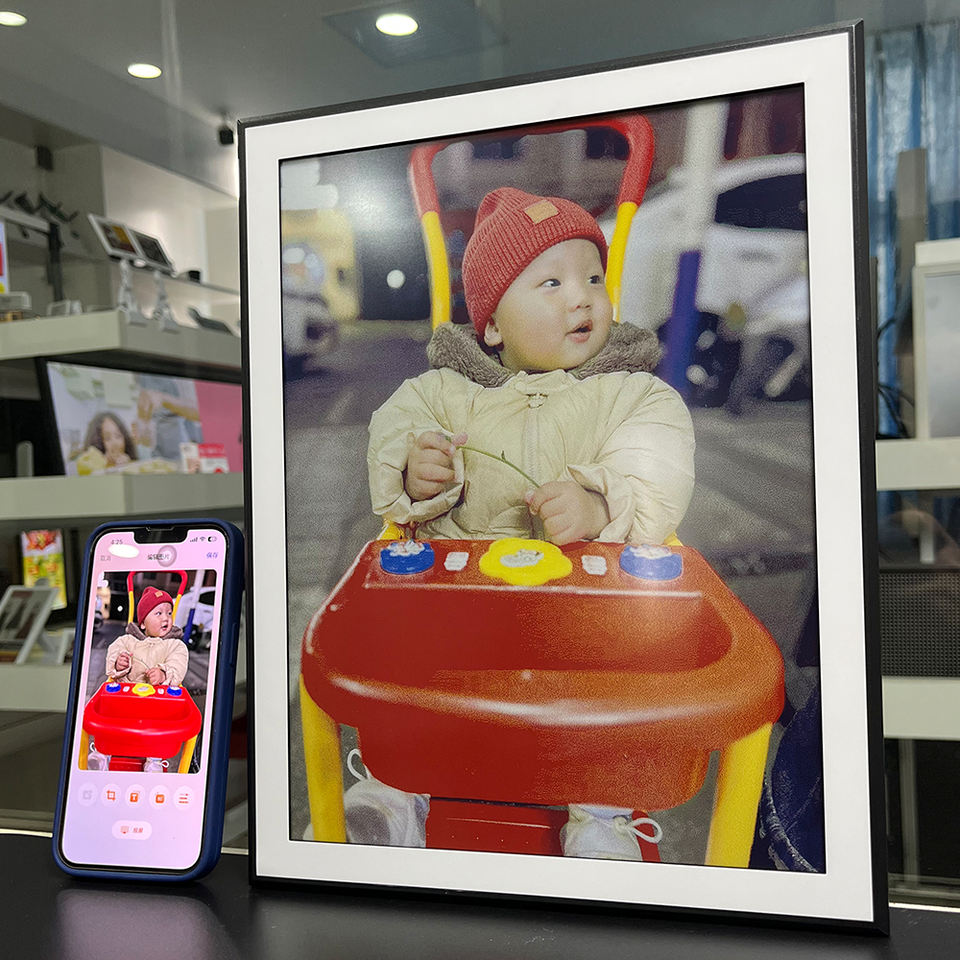 Cadre photo numérique 13,3 pouces à effet bois, écran d'affichage 6 couleurs 150 DPI, mise à jour cloud, autonomie de 36 mois, Wi-Fi