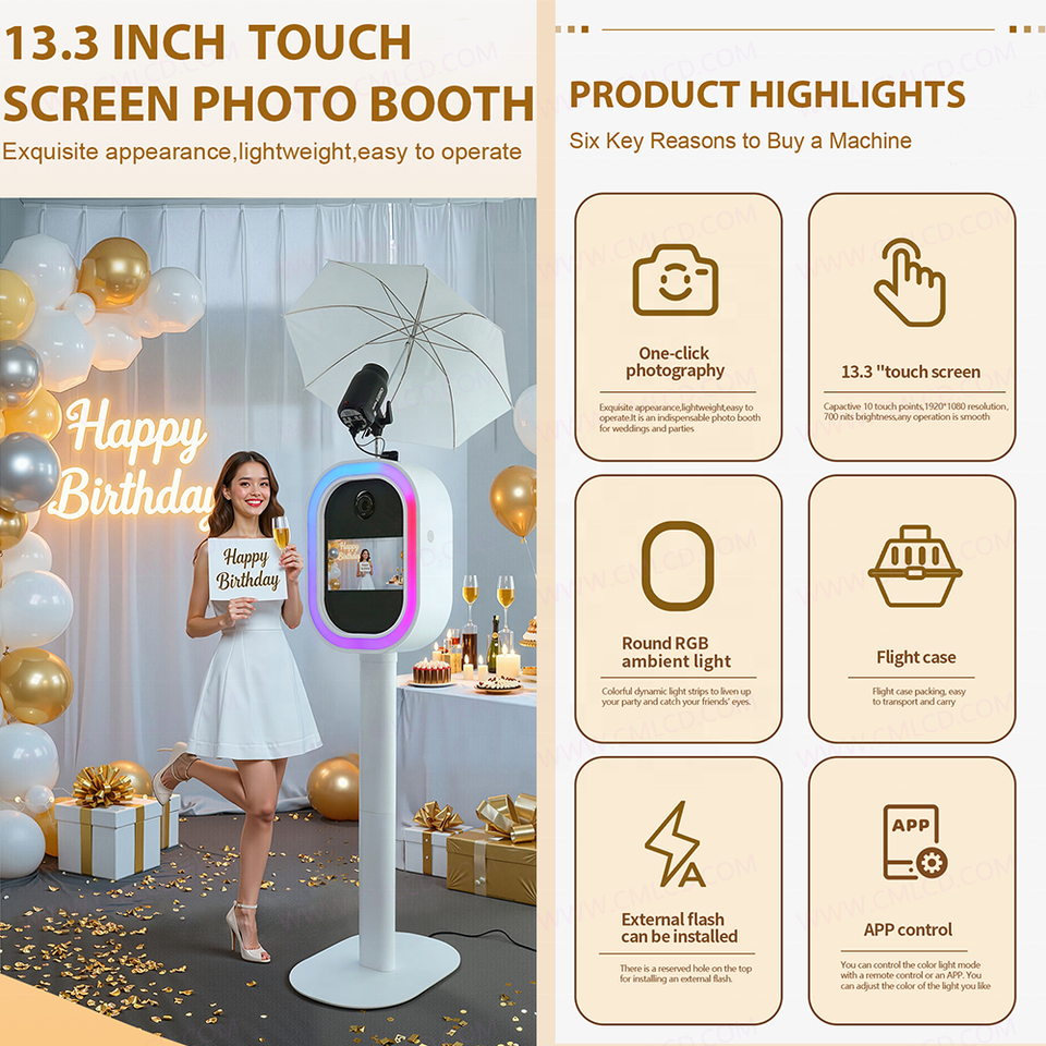 Nom du produit:13.3 "tactile interactif moniteur photo cabine ovale DSLR photo booth
