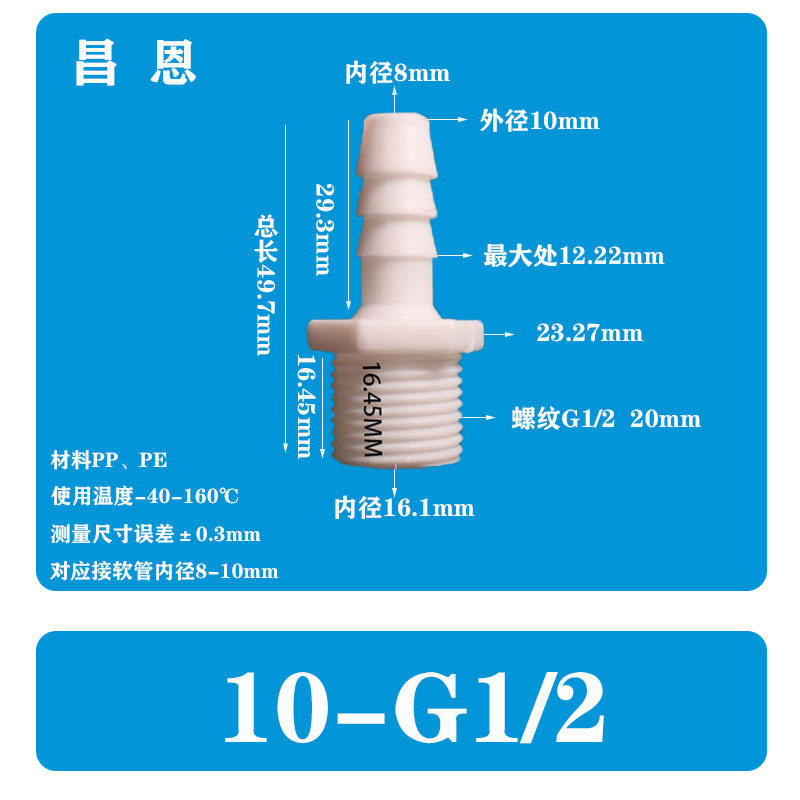 13/32-G1/2 10-G1/2 filetage extérieurSpécifications du produit