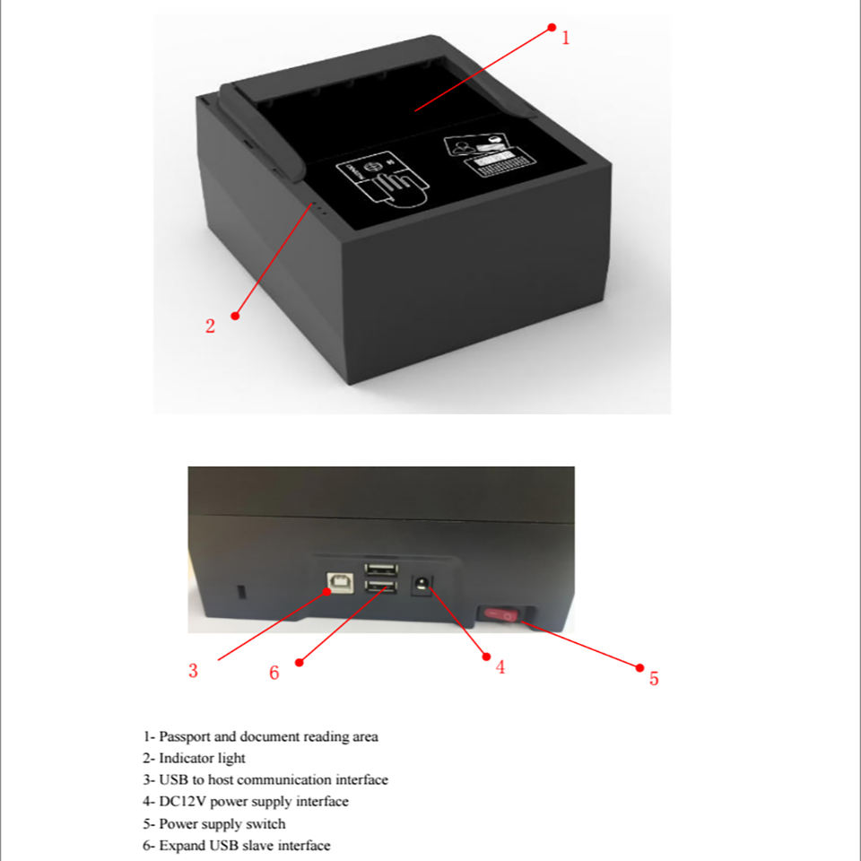 Types d'identifiants pris en charge:Documents d'identité électroniques standard ICAO 9303 Temps de lecture ≤ 3 secondes