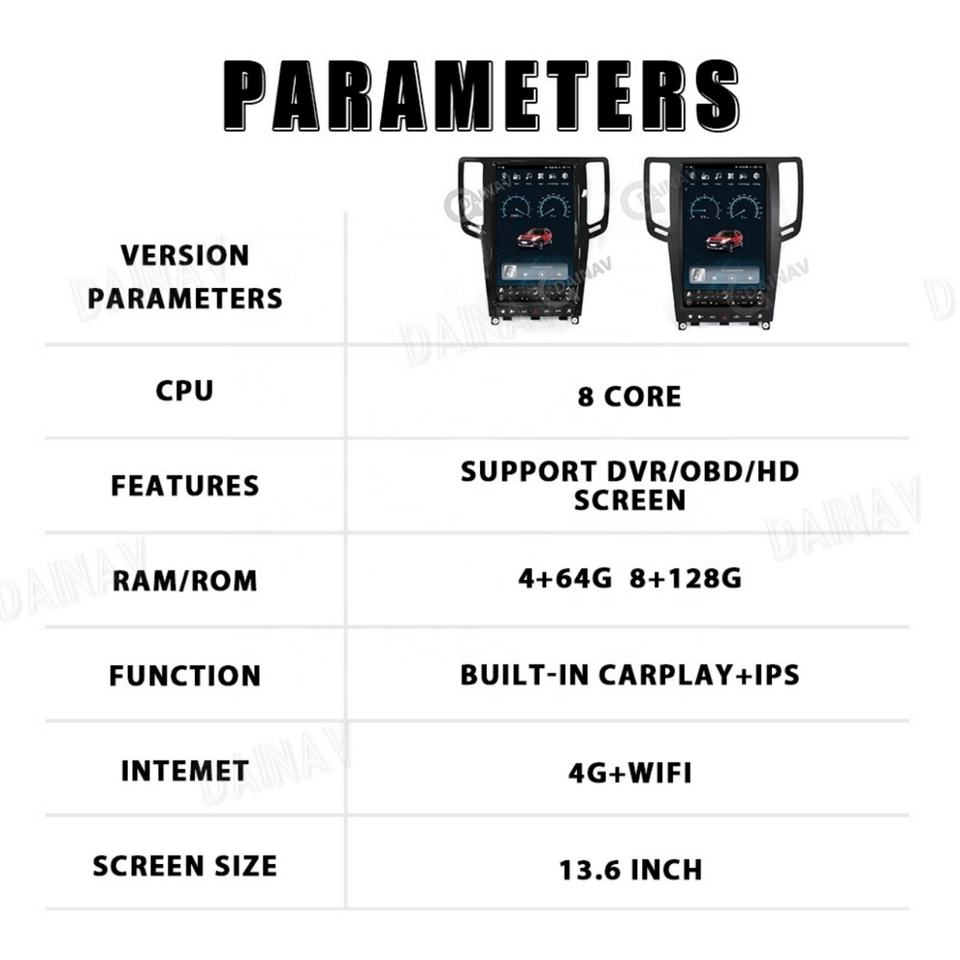 Autoradio 13,6 pouces pour Infiniti G35 G37 Q40 Q60 2007-2015 Écran vertical Lecteur multimédia stéréo Navigation GPS Android 12