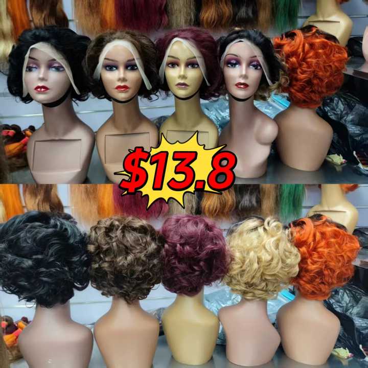 Promotion à 13,8 $ la pièce, vente en gros, perruques courtes à dentelle frontale 13x4 bon marché, bouclées, 100% cheveux humains, perruques de coupe pixie pour femmes noires