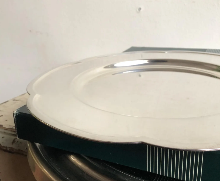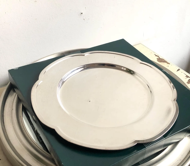 13 Inch Disposable Electroplated Silver Round Plastic Charger Plates Dot Style for Wedding Party Banquet Events