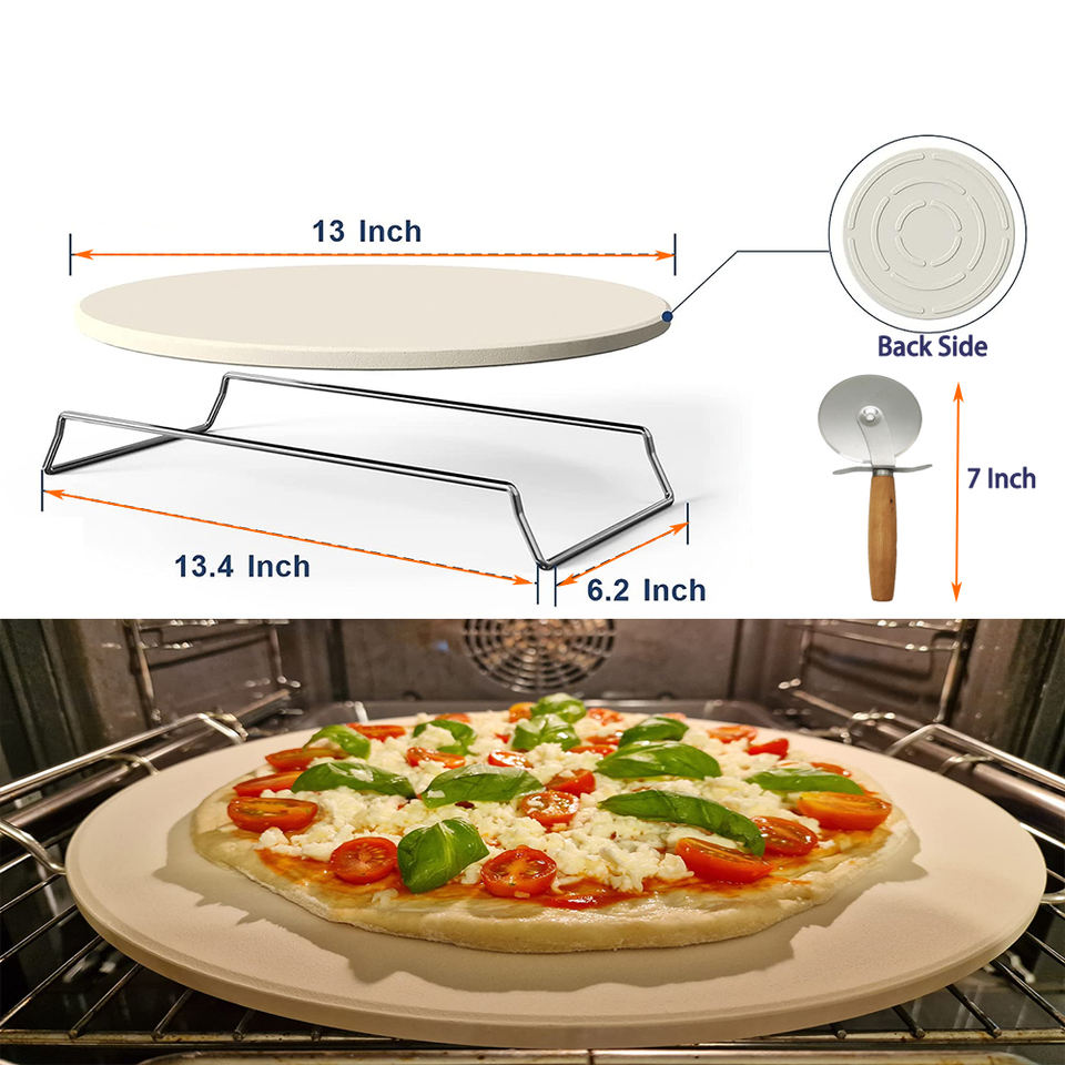 Ensemble de planche à pizza ronde en céramique de cordiérite de qualité alimentaire de 13 pouces pierre de cuisson avec coupe-fil et support de fil outils à pizza