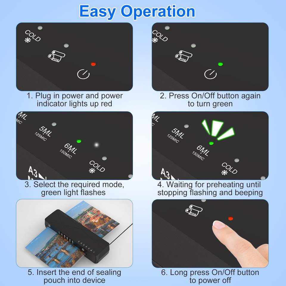 Plastifieuse thermique personnelle 13 pouces, modes chaud/froid, fonction ABS, temps de préchauffage 60s, arrêt automatique 30 min pour documents A4