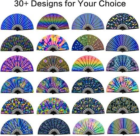 Éventails pliants en bambou lumineux de 13 pouces en polyester, bruyants, artisanaux, avec effet lumineux