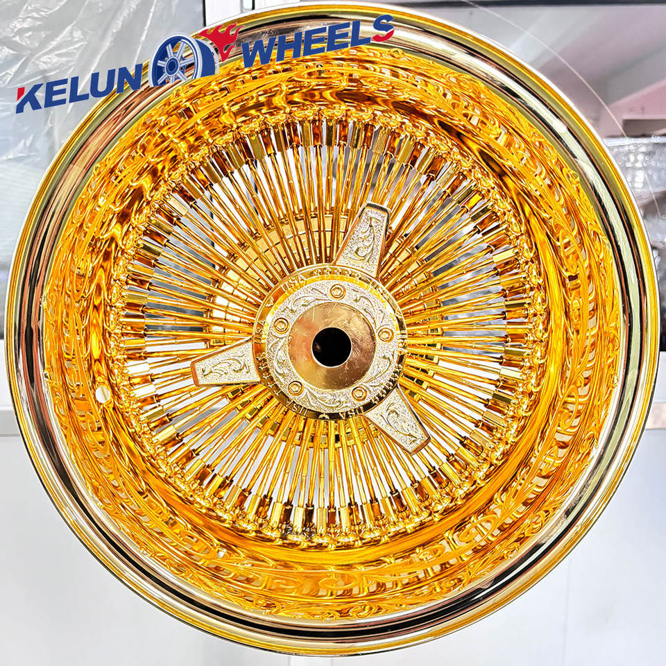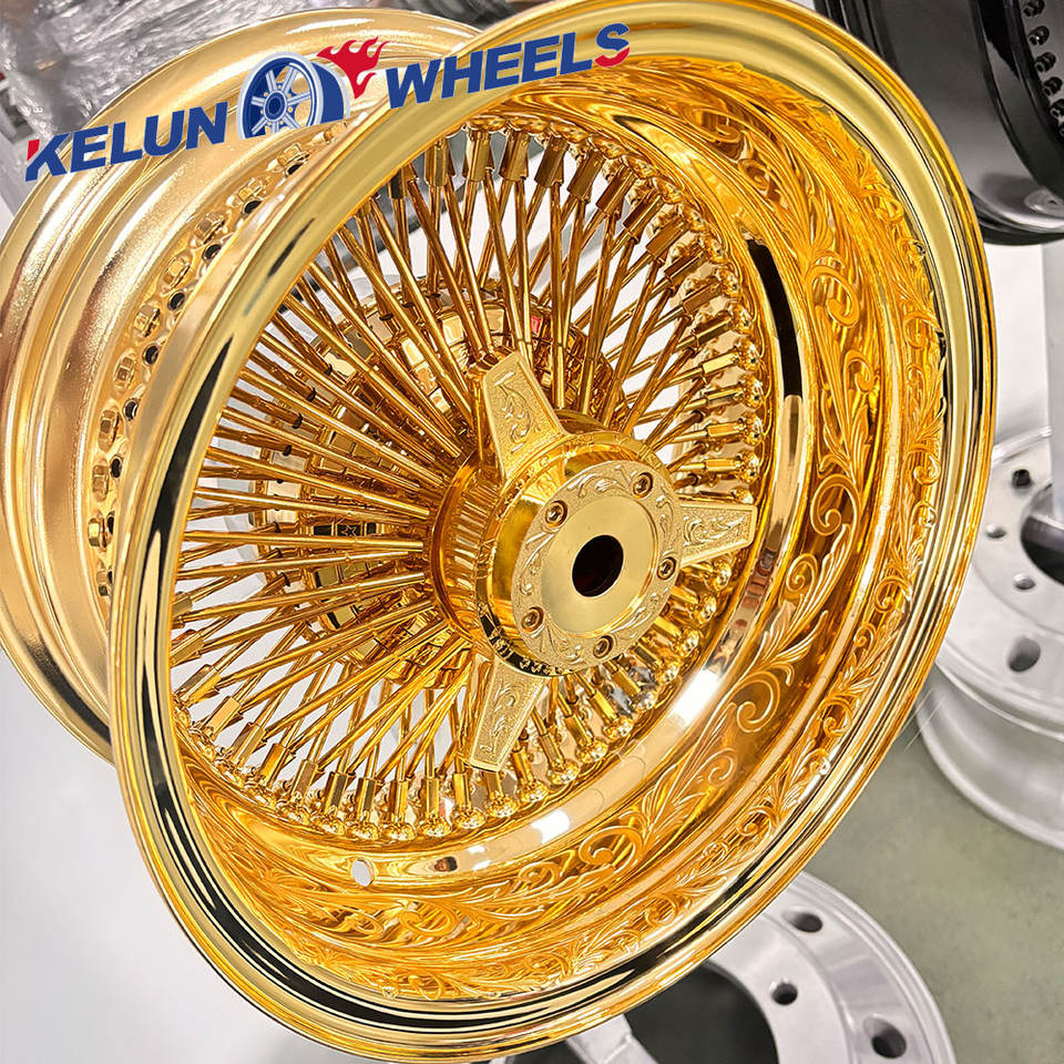 Jantes de 13 pouces 14*7 15*7 Carve Knock off Roues à rayons dorées Roues à rayons