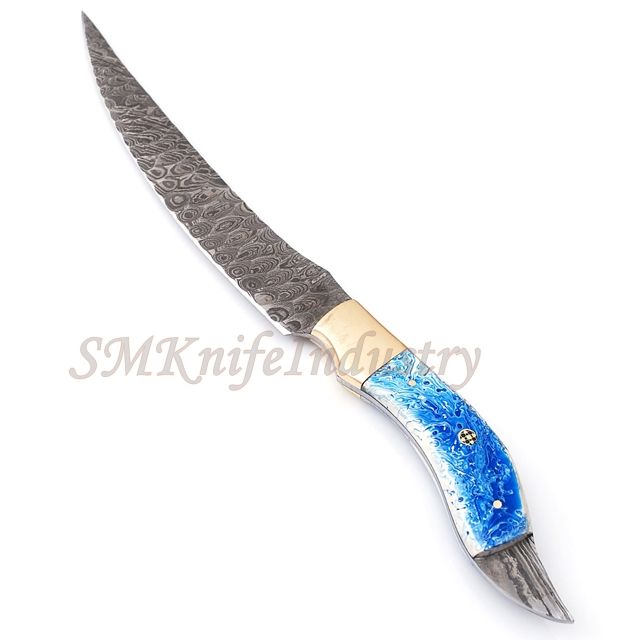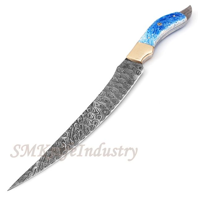13 pouces nouveau style personnalisé forgé à la main damas filet couteau de chef cuisine préparation de la viande gaine en cuir poignée en résine (SMK1644)