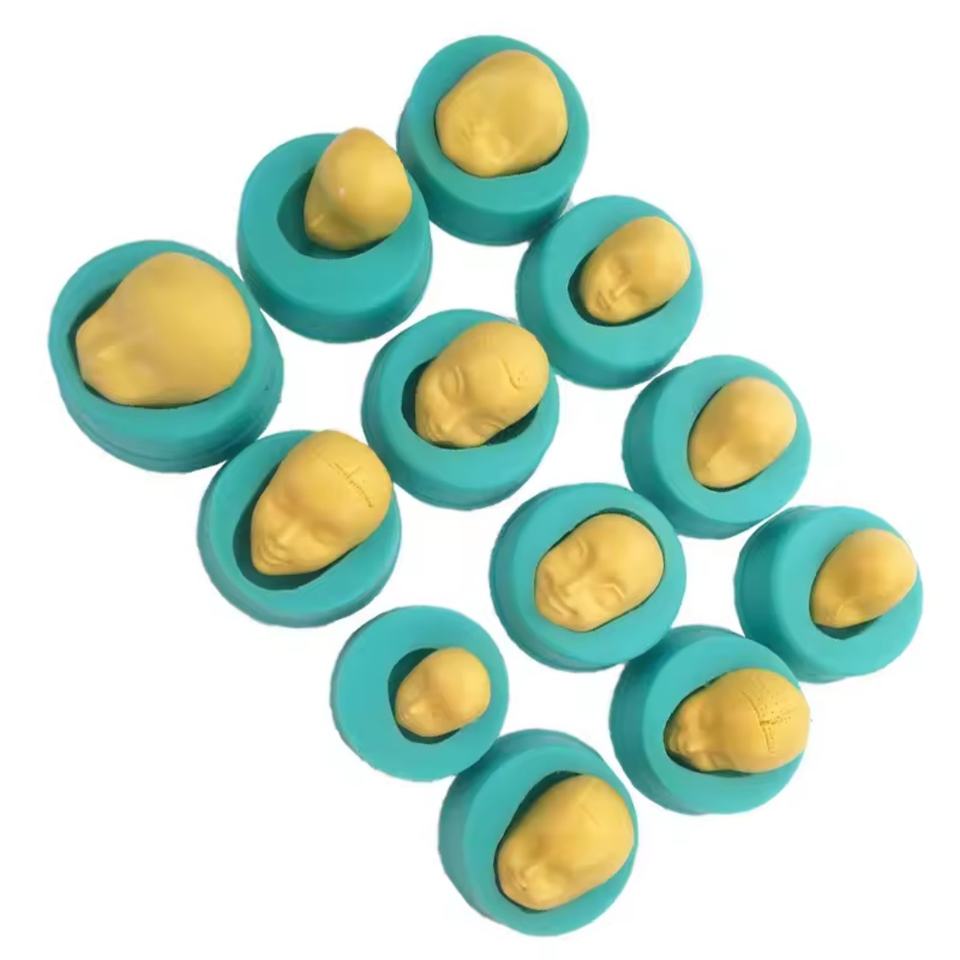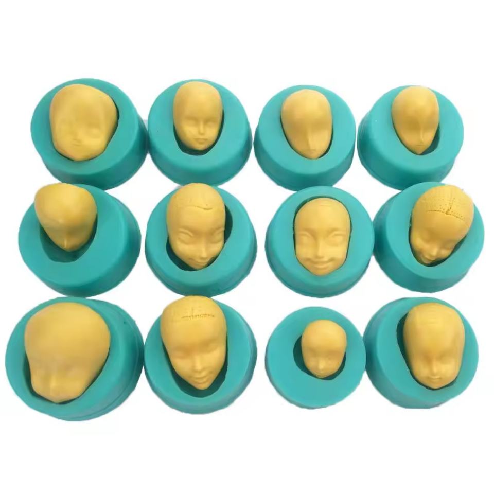 Lot de 13 moules en silicone 3D en forme de visage humain pour la pâtisserie, moule à fondant en forme de visage, moule en silicone pour décoration de bonbons et argile, moules tête de fille