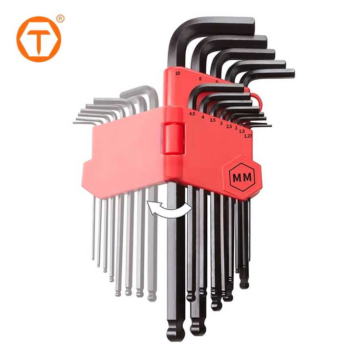 Jeu de clés hexagonales hexagonales à bout sphérique 13 pièces en acier au chrome vanadium jeu de clés Allen à bout sphérique métriques pour la réparation à domicile