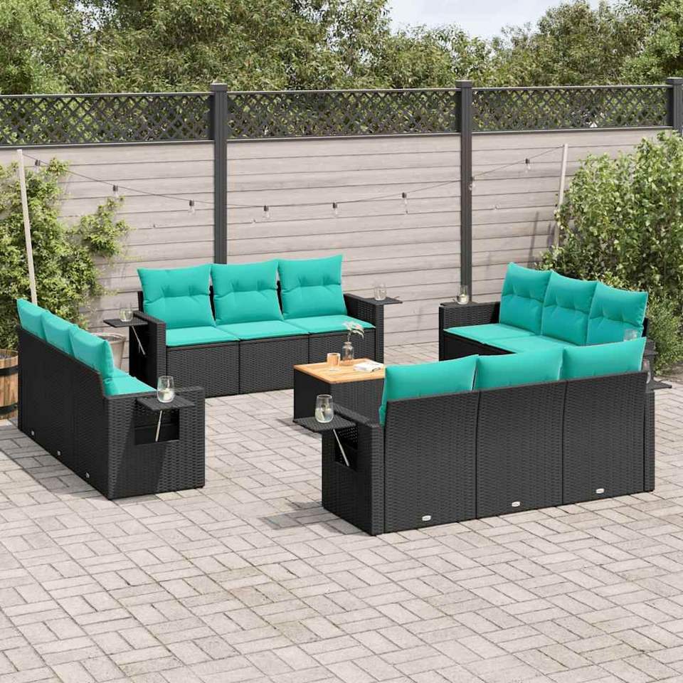 Ensemble de canapés de jardin en polyrotin noir, 13 pièces, avec coussins